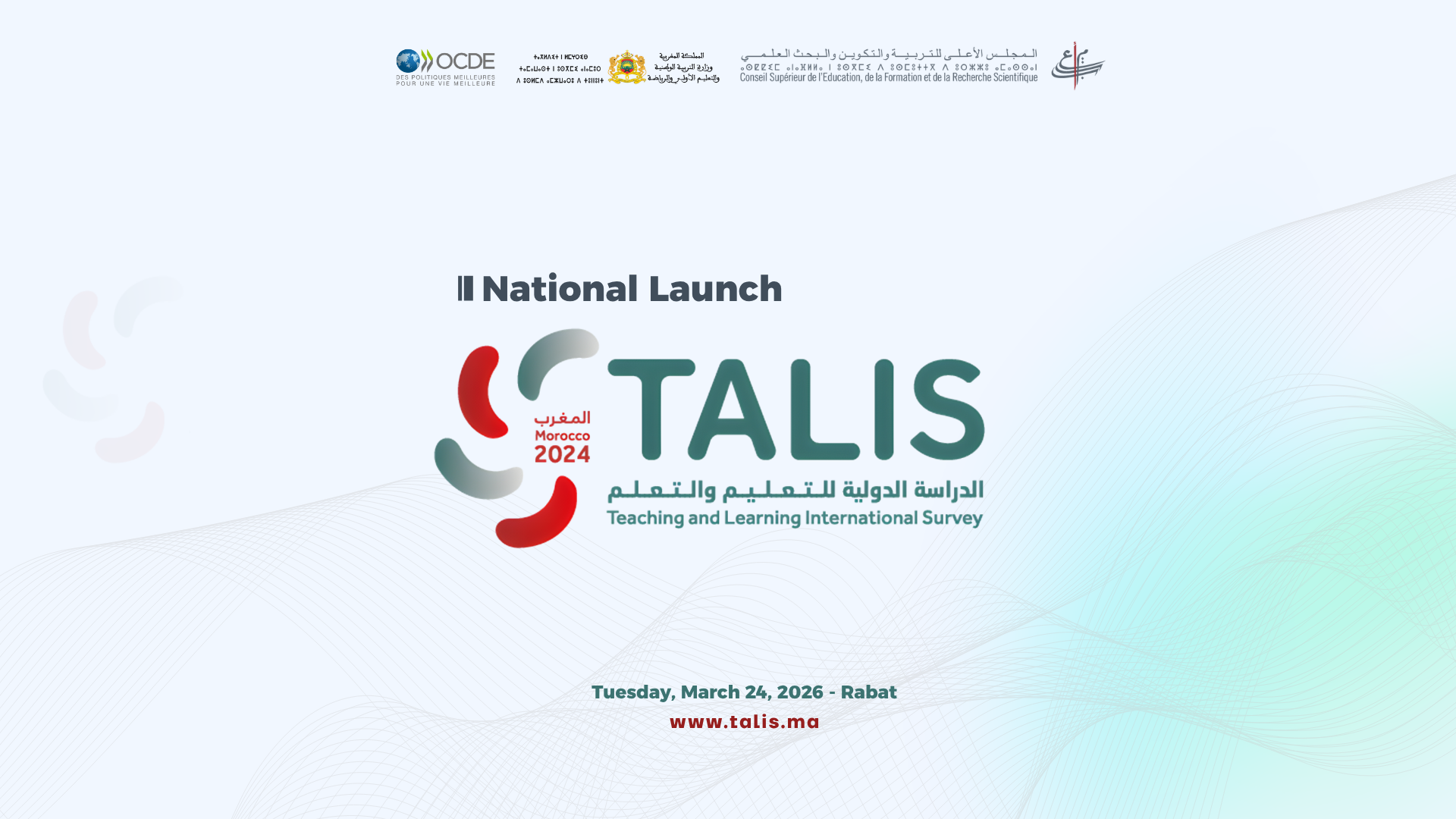Le Conseil Supérieur de l’Éducation, de la Formation et de la Recherche Scientifique (CSEFRS) organise en partenariat avec l’Organisation de Coopération et de Développement Économiques (OCDE), le mardi 24 mars 2026 à partir de 10h00, au siège du Conseil à Rabat, un séminaire international consacré à la restitution des résultats de l’étude relative à la participation du Maroc à l’enquête internationale sur l’éducation et l’apprentissage (TALIS 2024), réalisée par l’Instance Nationale d’Évaluation auprès du Conseil
